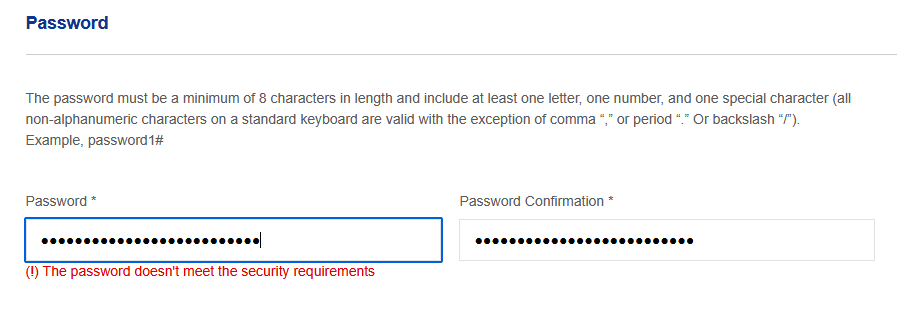While stating otherwise, the site actually accepts a backslash in the password and displays a forward slash as the example of the disallowed backslash Password: