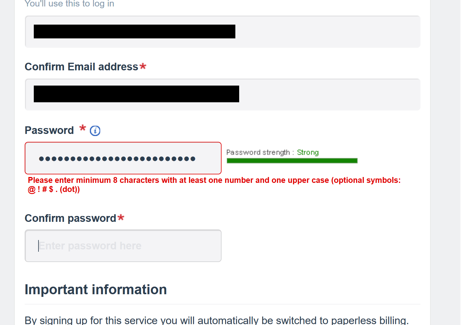 Can only use the "special" characters on that very limited list, excluding symbols so exotic as an underscore, even. This is despite their own strength checker saying the password is strong.